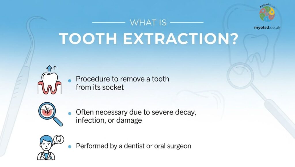 A tooth extraction is a dental treatment in which a dentist removes a tooth from its socket. There are several reasons you might need an extraction: severe tooth decay, an impacted wisdom tooth, overcrowded teeth, gum disease, or trauma from an accident. Extractions can be simple, where the tooth is removed easily, or surgical, requiring cutting the gum or dividing the tooth into sections.